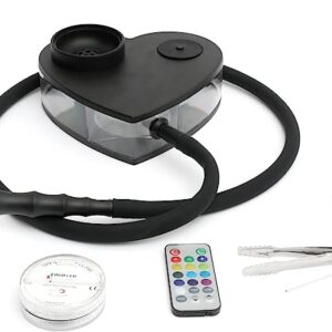 xiaochen Acrylic Shisha Hookah Pipe Set with Silicone Bowl, Washable Silicone Hose, Ashtray Holder, Pliers, LED Light and Remote Control (Acrylic Heart Hookah) black,blue