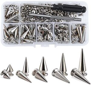 YORANYO 70 Sets Mixed Shape Spikes and Studs Assorted Sizes Spike Studs for Clothing Silver Color Screw Back Bullet Tree Studs and Spikes Rivet for Leather Craft Clothing Shoes Belts Bags Dog Collars