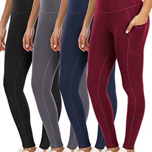 YOUNGCHARM 4 Pack Leggings with Pockets for Women,High Waist Tummy Control Workout Yoga Pants