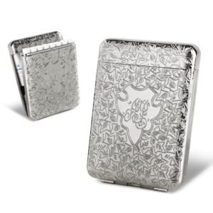 YUSUD Metal Cigarette Case, Vintage Cigarette Holder for Weed, Peaky Blinders Box for 16pcs 84mm King Size Cigarettes, Unique Birthday Christmas Gifts for Women Men (Silver)