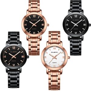 Yunanwa 4Pcs/Set Women Men Quartz Watches Luminous Calendar Date Window 3ATM Waterproof Casual Stainless Steel His and Hers Wristwatch for Men Women Lovers Wedding Romantic Gifts Couple Pair