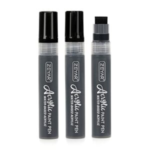ZEYAR Jumbo Paint Marker Pens, Graffiti Marker, Water Based Acrylic, 15mm Felt Tip, Waterproof and Permanent Ink, Great on Plastic,Stone,Metal and Glass for Doodling(3 Black)
