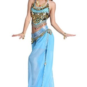 ZLTdream Lady Belly Dance Chiffon Banadge Top and Lantern Coins Pants