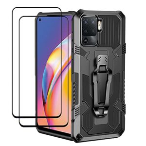 ZMONE Phone Case for Oppo Reno 5 Lite/Oppo A94 4G / Oppo F19 Pro Case with Tempered Glass Screen Protector [2 Pack] Military Grade Shockproof Protective Case Cover with Metal Back Belt Clip – Black