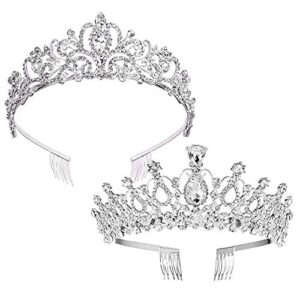 ZOCONE Rhinestone Bridal Tiara 2 pack Crystal Wedding Crown for Bridal and Flower Girls Headpiece with Comb (Crystal)