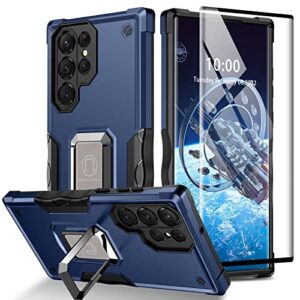AMILIFECASES for Samsung Galaxy S22 Ultra Case,Shockproof S22 Ultra Case with Stand &Tempered Glass Screen Protector,Anti-Scratch Phone Case for S22 Ultra-Blue