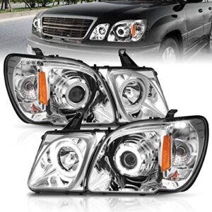 AmeriLite Chrome Projector Headlights Ultra Bright LED Halo For Lexus LX470 – Passenger and Driver Side