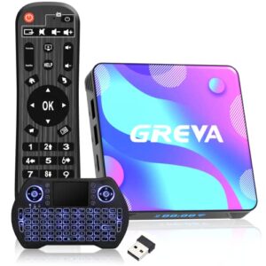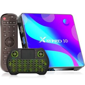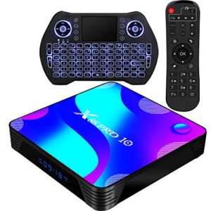 Android TV Box 11.0, RK3318 4GB RAM 32GB ROM BT 4.0 3D 4K HDR Dual Band WiFi 2.4G/5.0G Home Video Smart TV Box with Mini Backlit Keyboard Android Box Set Top TV Box