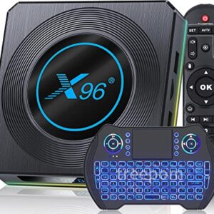 Android TV Box 11.0, X96 X4 Android TV Box 4GB RAM 64GB ROM, Amlogic S905X4 Quad-Core 64bits 1000M LAN Dual-WiFi 2.4G/5G 8K/6K/AV1/3D/USB 3.0/BT 4.2 Android Box with Wireless Keyboard