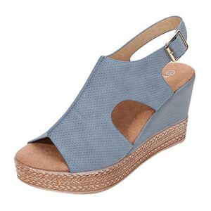 Aniywn Womens Espadrille Platform Sandals Summer Slingback Sandals High Heel Wedge Peep Toe Ankle Strap Hollow Out Shoes