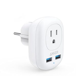 Anker European Travel Adapter, PowerExtend USB Plug International Power Adapter with 2 USB Ports and 1 Outlet, US to Most of Europe EU Spain Iceland Italy France Germany, Compact for Travel, Office