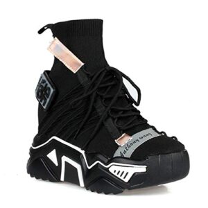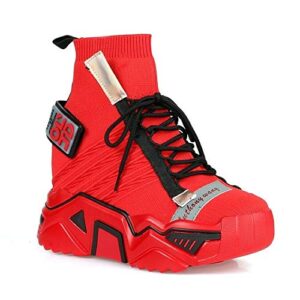 Anthony Wang Women Retro Lace-Up Chunky Platform Extra High Hidden Wedge Fashion Sneaker-Damson-08