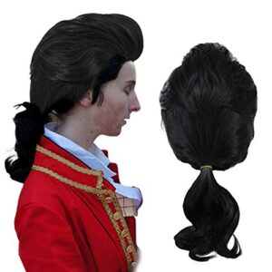Anogol Hair Cap + Black Long Men Anime Cosplay Wig with Ponytail Costume Synthetic Hair Wigs For Halloween
