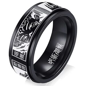 AntDear Jujutsu Kaisen Ring Anime Rings for Men, Black Stainless Steel Spinner Ring Anime Jewelry Merchandise