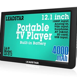 12 Inch Portable Digital ATSC TFT HD Screen Freeview LED TV for Car,Caravan,Camping,Outdoor or Kitchen.Built-in Battery Television/Monitor with Multimedia Player Support USB Card LEADSTAR