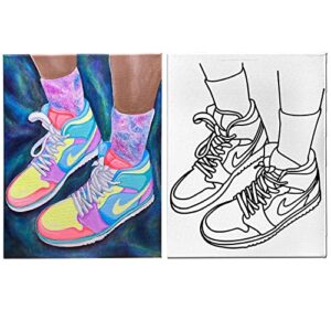 11×14 Canvas Painting | Sneakers 80s Retro Theme | Pre Drawn Stretched Canvas | Retro Artwork | Adult Sip and Paint Party Favor | Therapeutic Painting Sneakers