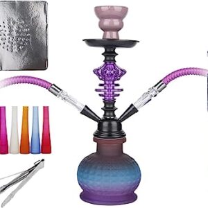 12 Hookah Set 2 Hose Complete Set – Mini Multicolor Glass Ball Shisha Hookah Vase (Purple)