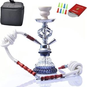 11 Hookah Set 2 Hose with Aluminum Hookah Kit Thickened Glass Vase Base with Coal Tongs Ashtray and Ceramic Bowl, Portable Design Shisha Hookah with Travel Bag