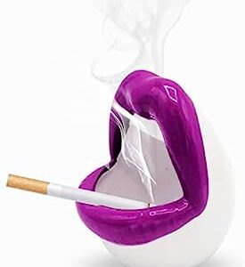 Artolo Ceramic Cigarette Ashtray for Home – Windproof Women Lip Tray for Ash – Lips Ashtrays for Weed Accessories – Cigar Indoor Outdoor Stand Trash Can – Modern Outside Patio Decoration, Purple