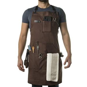 Asaya Chef, BBQ and Work Apron with Bottle Opener and Hand Towel – Durable 10oz Cotton Canvas, Brass Hardware and Cross Back Straps – For Men, Women, Grilling, and Cooking (Brown)