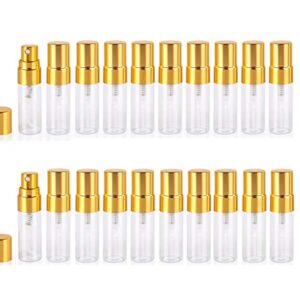 Atomizer Glass bottle Spray Bottle, 3ml Refillable Fragrance Perfume Mini Fine Mist Travel Small Empty Bottle Fragrance Clear Bottle With Aluminum Nozzle,20pcs (Gold)