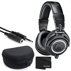 Audio-Technica ATH-M50x Closed-Back Professional Monitor Headphones – 90° Swiveling Earcups (Black) + Headphone Case + 1/4 inch TRS Extension Cable + Cloth – Deluxe Headphone Bundle