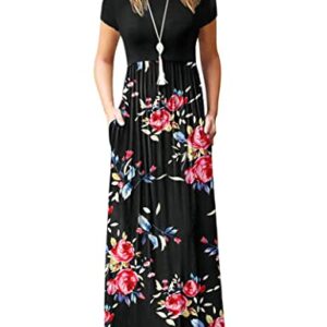 AUSELILY Women Short Sleeve Loose Plain Casual Long Maxi Dresses with Pockets