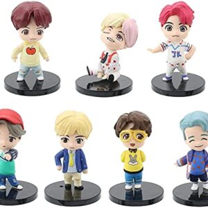 Ausitool 7PCS BTS Mini Idol Doll Deluxe Topper Figure Play Set|BTS Premium Cake Topper Action Figures – Toys|Car Interior Decoration BTS Party Supplier