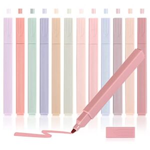 12pcs Pastel Highlighters Aesthetic Cute Highlighter Soft Chisel Tip Marker Pen with Mild Assorted Colors, No Bleed Dry Fast Easy to Hold for Journal Bible Planner Notes School Office Supplies LABUK