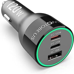 120W USB C Car Charger Adapter, WOTOBEUS PD 100W/PPS 45W 30W 18W Super Fast Charging Type C LED Cigarette Lighter for iPhone 14 Pro Plus 13 Samsung Galaxy S22 S21 Note20 iPad MacBook Laptop Pixel
