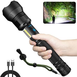 120000 Lumens Flashlights, Rechargeable Flashlights High Lumens with USB Cable, Super Bright LED Flashlight for Emergencies, High Powered Flash Light IPX6 Waterproof 7 Light Modes Zoomable