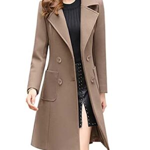 Bankeng Women Winter Wool Blend Camel Mid-Long Coat Notch Double-Breasted Lapel Jacket Outwear
