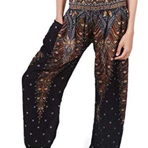 Banjamath® Women Smocked Waist Harem Hippie Boho Yoga Palazzo Casual Pants