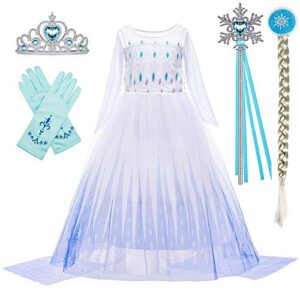 BanKids Princess Snow Queen Act 2 Costumes for Girls with Wig,Crown,Magic Wand,Gloves Accessories 3T-10Y