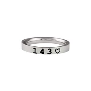 143 – Stainless Steel Stacking Ring, I Love You Heart Ring, Numerical Love, Gift for Her & Him, Couples Mother Daughter Sorority Sisters Friends Friendship, Valentines Anniversary Birthday Christmas