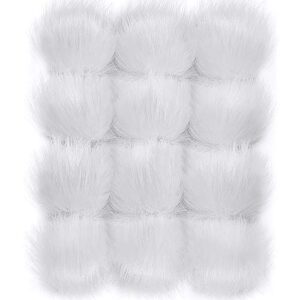 14 Pieces Tatuo Faux Fur Pom Pom Ball DIY Fur Pom Poms for Hats Shoes Scarves Bag Pompoms Keychain Charms Knitting Hat Accessories (White)