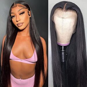 13×4 HD Lace Front Wigs Human Hair Pre Plucked Straight Lace Front Wigs For Black Women Human Hair Glueless Transparent Frontal Wigs Human Hair Bleached Knots 150% Density 26 Inch