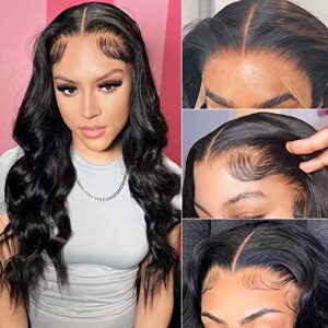 13×6 HD Body Wave Lace Front Wigs Human Hair Wigs for Black Women 160% Density Glueless Brazilian Virgin Transparent Lace Frontal Wigs Human Hair Pre Plucked With Baby Hair Natural Color 20 Inch