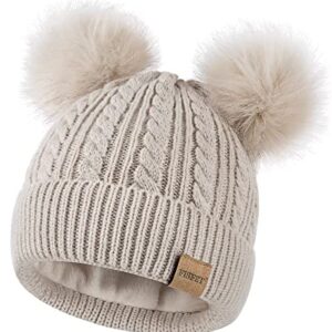 Beanies Women with Double Pom Pom, Winter Hats for Women Cold Weather Warm Knit Fleece Lined, Cute Beanie Cap for Daily Use