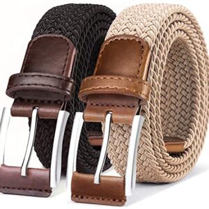Belt for Men 2Pack,BULLIANT Mens Stretch Braided Web Belt for Casual Golf Hunting Pants Jeans,1 3/8″