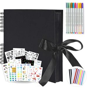 bemece Scrapbook, 12 x 8 Inch 80 Pages Photo Album Craft Paper, Thick DIY Handmade Album Scrapbook for Anniversary, Wedding,Travelling, Baby Shower (Black-Card)