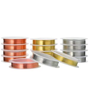 15 Pcs 5 Size Copper Wire 18 20 22 26 32 Gauge Jewelry Wire Tarnish Resistant Wire for Jewelry Making 121 Yard Metal Beading Wire for Jewelry Making Supplies and Crafting, Rose Gold, Silver and Gold