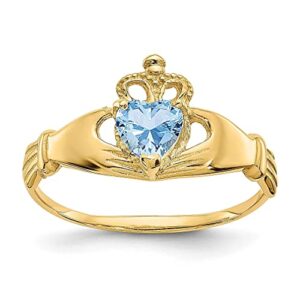 14k Yellow Gold Cubic Zirconia Cz March Birthstone Irish Claddagh Celtic Knot Heart Band Ring Size 7.00 Fine Jewelry For Women Gifts For Her