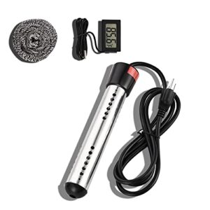1500W Immersion Water Heater | Portable Hot Water Heater Electric | Pool Heater for above Ground Pool, Bathtub, Barrel, Water Troughs for Livestock | 304 Stainless Steel Cover & Digital Thermometer