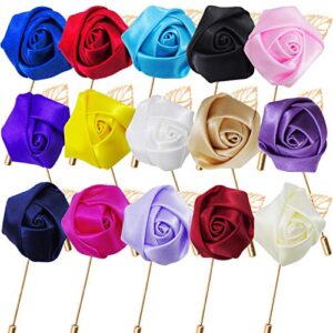 15 Pieces Lapel Pin for Men Lapel Flower Pins Lapel Pins Boutonniere Pin Handmade Rose Lapel Pin for Suit Wedding Groom