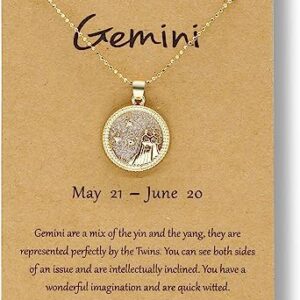 14K Gold Plated Zodiac Coin Embossed Necklace Disc 12 Constellation Astrology Horoscope Personalized CZ Crystal Pendant Necklace for Women with Wishing Card Round Choker Gift