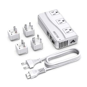 BESTEK Universal Travel Adapter 100-220V to 110V Voltage Converter 250W with 6A 4-Port USB Charging 3 AC Sockets and EU/UK/AU/US/India Worldwide Plug Adapter (White)