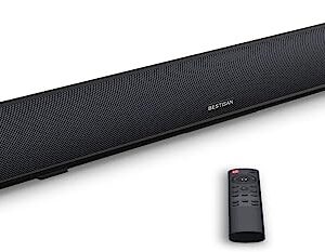 BESTISAN Soundbar, TV Sound Bar with Dual Bass Ports Wired HDMI and Wireless Bluetooth 5.0 Home Theater System (28 Inch, Enhanced Bass Technology, 3-Inch Drivers, Bass Adjustable, Wall Mountable, DSP)
