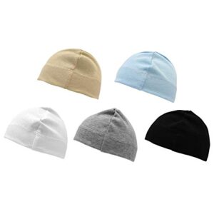Betty Dain Jersey Knit 5 Piece Infant/Baby Cap, Set of 5 Soft Baby Beanies, Assorted Colors, 100% Cotton Stretch, Boys, Machine Washable, Grey/White/Black/Beige/Blue