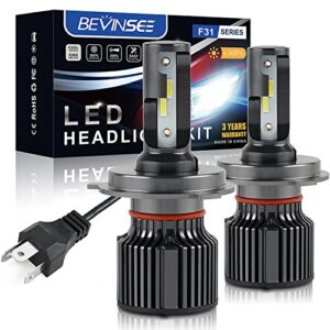 Bevinsee H4/9003 LED Headlight Bulbs, 50W 10000LM 300% Brighter LED Headlights Conversion Kit 6000K Cool White, Mini Size Built-in Driver LED Headlights Hi/Lo Beam, IP68 Waterproof, Pack of 2